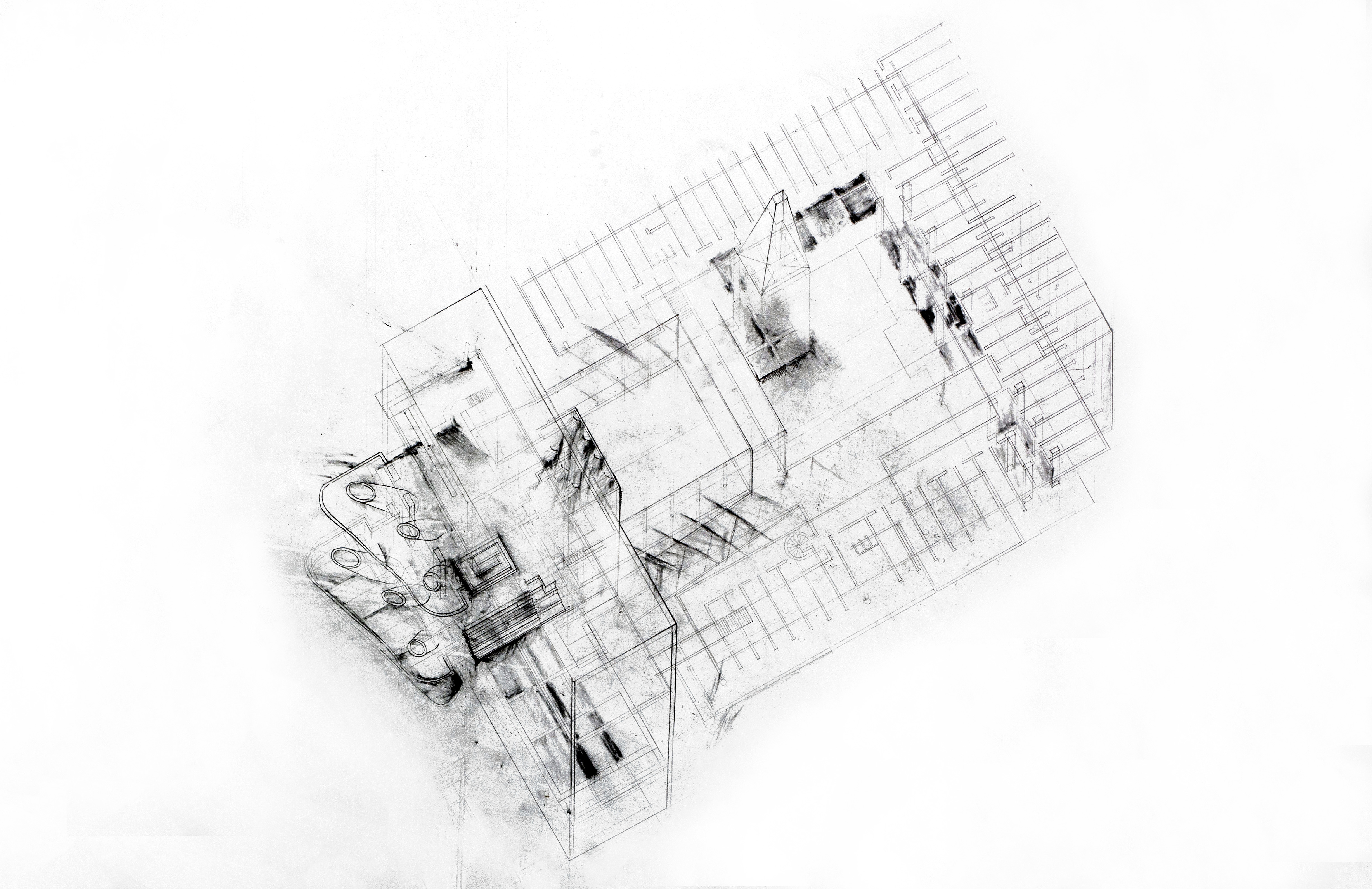 Plan Drawing, Charcoal and Graphite, La Tourette